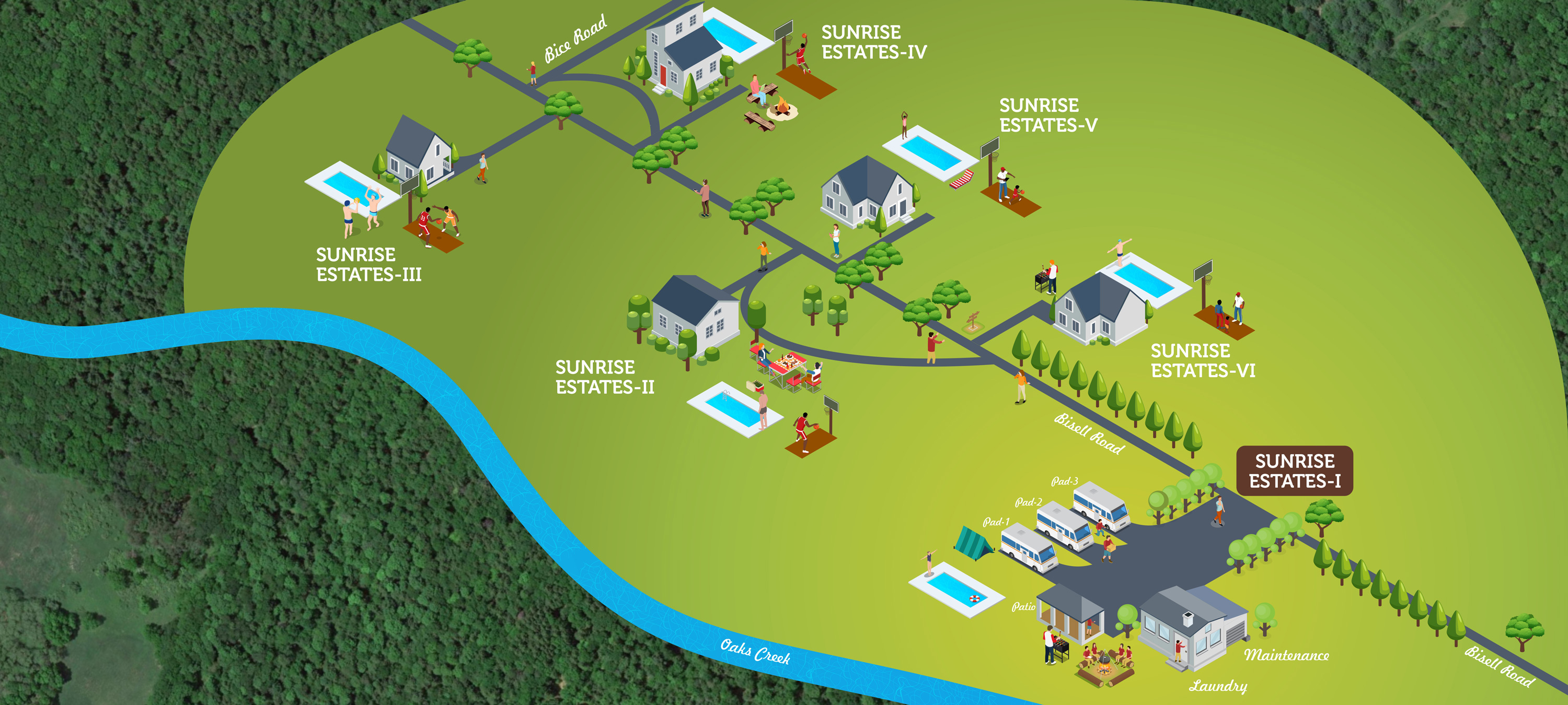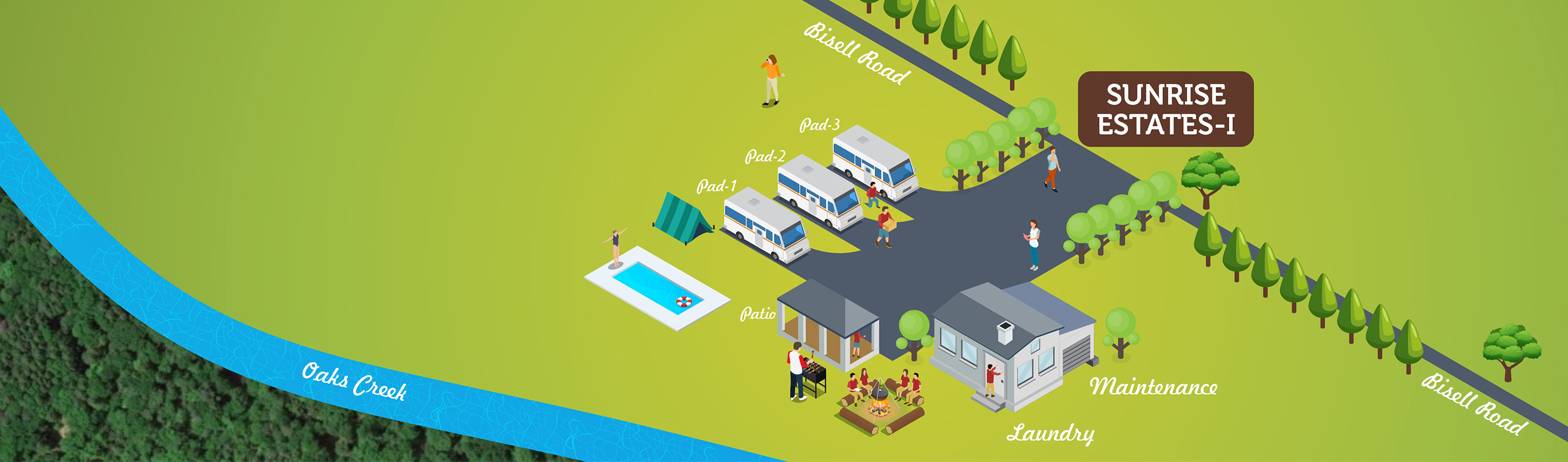 When you camp at OTGRV Sunrise Estates-I, convenience and comfort go hand in hand. Explore the pastoral area, trek up to Oaks Creek to spot some wild deer, or visit the nearby landmarks. There's plenty to do here. This exclusive, private campsite offers amenities like: